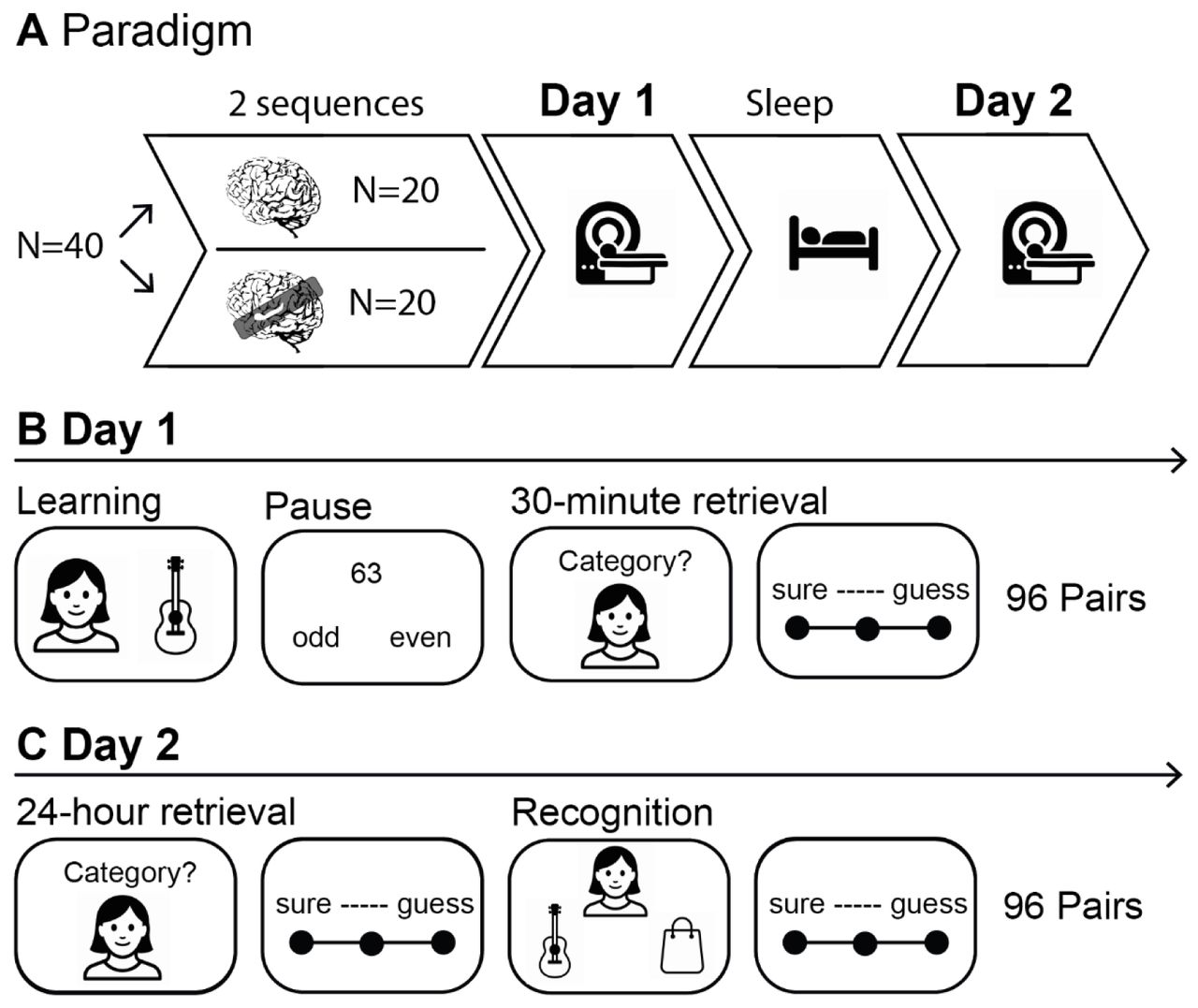 Затем, спустя 30 минут и 24 часа, началось тестирование, во время которого мозг участников сканировали с помощью фМРТ — технологии, позволяющей видеть, какие участки мозга активны в данный момент. Людей просили указать, какая картинка составляла пару с показанным лицом. При этом они должны были уточнить, как они сделали свой выбор: