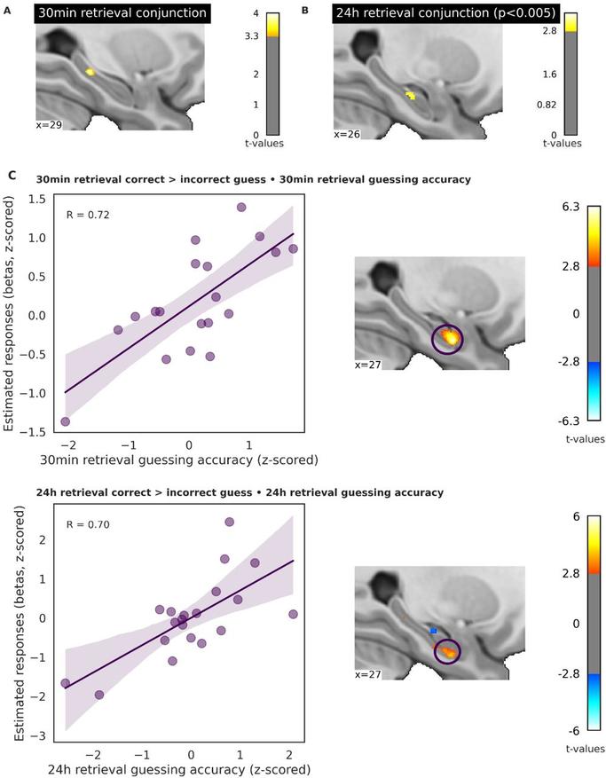 Но главный прорыв ждал учёных на снимках фМРТ. Когда «угадывающий» человек случайно (как ему казалось) выбирал правильную пару, его мозг демонстрировал точно такую же активность в гиппокампе — ключевом центре памяти, — как и у человека, который был уверен в своём ответе!