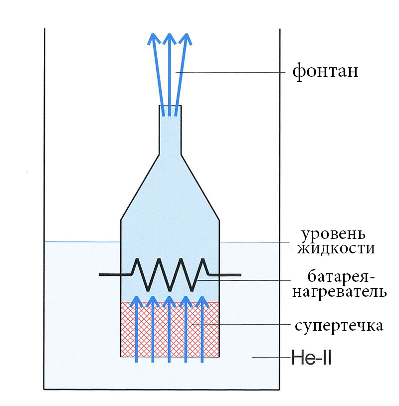 При нагреве сверхтекучего гелия II на дне сосуда образуется давление (фонтанное), направленное вверх по пленке Rollin, что приводит к подъёму жидкости на высоту, соответствующую разности мольных потенциалов и гравитационному давлению.