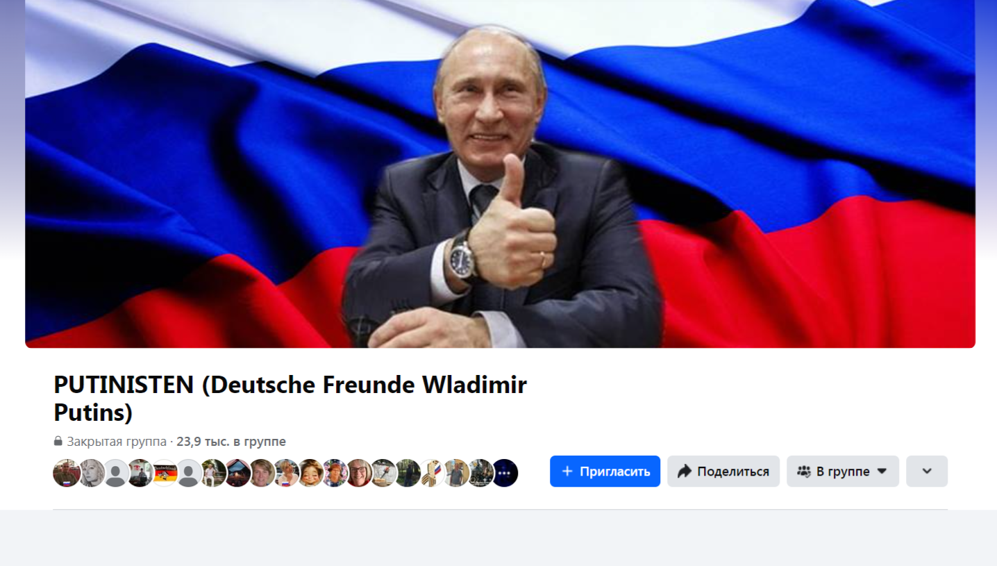 Добавим, что в соцсети. запрещенной в РФ, активно действует довольно многочисленная группа «Немецких друзей Владимира Путина», основное название которой - PUTINISTEN. В группе идут политические дискуссии и ее участники очень рискуют стать очередными жертвами реинкарнации политической полиции Третьего рейха, известной как Гестапо.