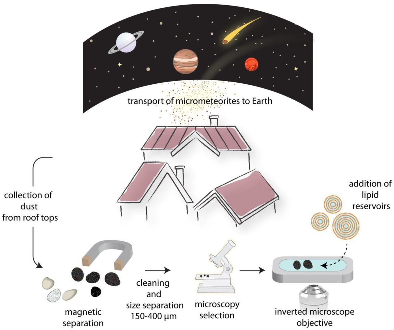 Учёные давно знают, что липиды могут самоорганизовываться в полые сферы — протоклетки, эдакие «прототипы» настоящих клеток. Но обычно для этого требуются весьма специфические условия в растворе. И вот здесь на сцену выходят микрометеориты.