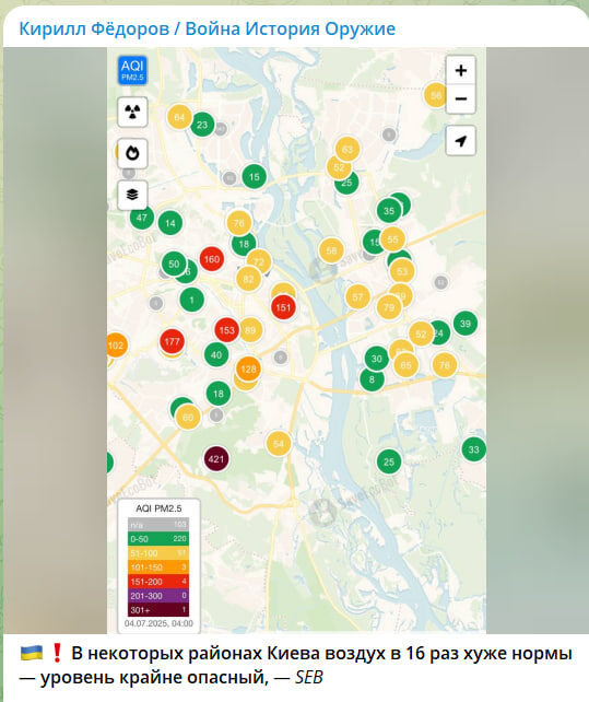 В нескольких районах Киева перманентно звучали взрывы и вспыхивали сильные пожары. Воздух столицы затянуло плотной и едкой гарью. Воздух украинской столицы стал в 16 раз хуже нормы.
