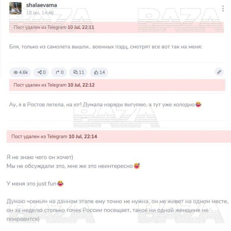 Судя по удаленным Шалаевой публикациям в её телеграм-канале, в Ростов с возлюбленным она прилетала и ранее: в январе этого года, блогерша публиковала фото из зимнего аэропорта Платов. Тогда Мария писала, что январская поездка была внезапной. На многочисленные вопросы о мужчине, Шалаева отвечает, что у них отношения на расстоянии (сама Мария в разводе), и они не видятся иногда по две недели. Также блогерша написала, что он «не из Екб», «не военный! И не ФСБ! Я теперь знаю, кто он, но говорить нельзя».