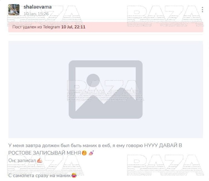 Блогер Мария Шалаева из Екатеринбурга опубликовала видео, на котором видно, что она вместе со своим трёхлетним сыном и мужчиной, лицо которого скрывается, находится внутри военного самолёта. По словам девушки, она прилетела в Ростов-на-Дону, аэропорт которого закрыт с начала СВО, её и её мужчину встречал дорогой автомобиль и череда военных на аэродроме. После приземления Шалаева побывала в дорогом ресторане, отеле и даже сделала маникюр, на который её записал возлюбленный только ради того, чтобы она составила ему компанию в поездке. При этом своему бывшему мужу и отцу ребёнка она угрожает отправкой на СВО.