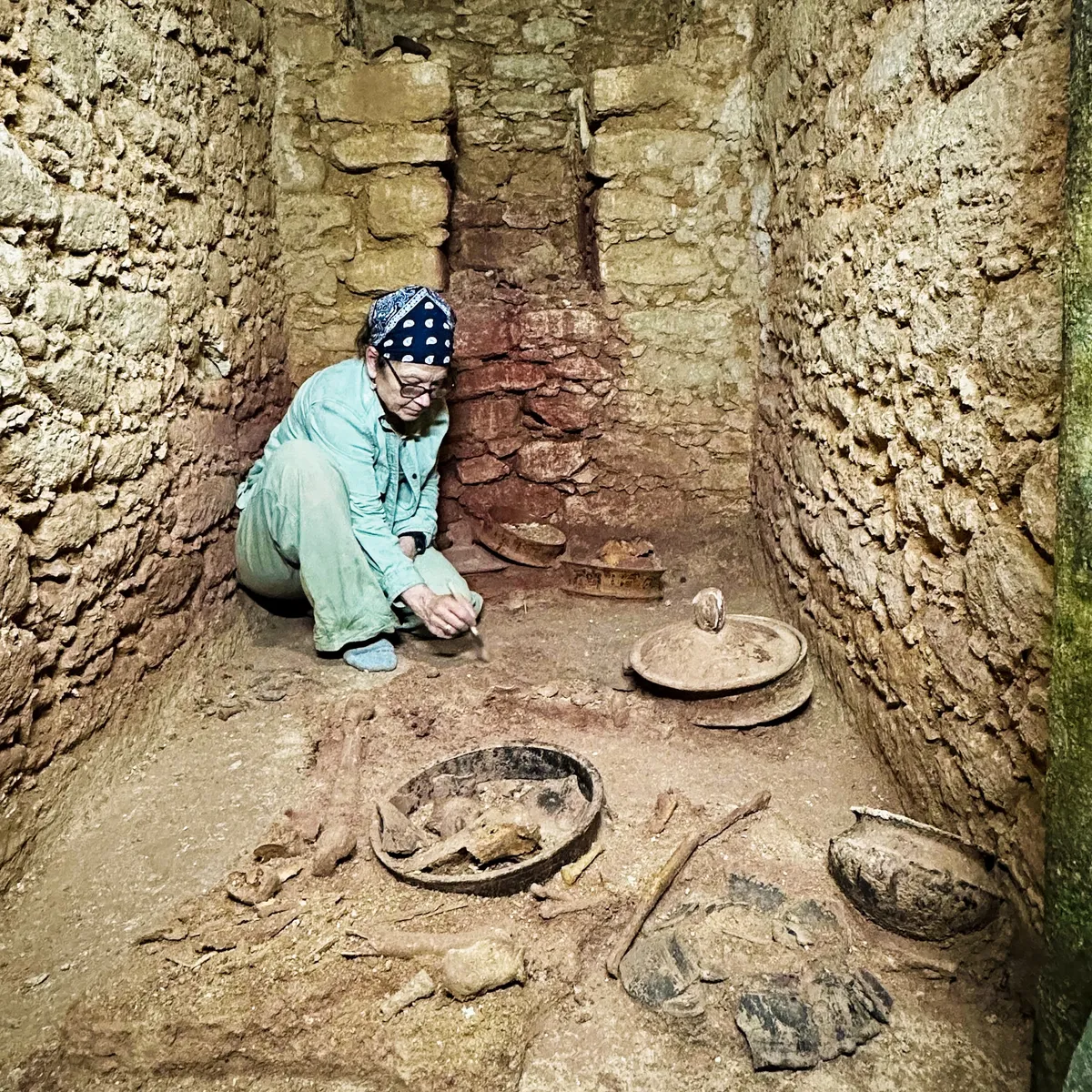 Место обнаружения погребения — «Северо-восточный Акрополь», возвышенная часть древнего города, служившая одновременно местом проживания знати и проведения общественных ритуалов. Усыпальница основателя стала одной из трех крупных гробниц, выявленных в данном секторе поселения.