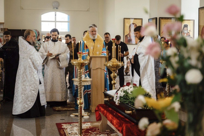 Обряд отпевания ребенка провел митрополит Курский и Рыльский Герман. Проститься с погибшим мальчиком пришли сотрудники областного правительства, представители регионального исполкома Народного фронта, военнослужащие спецназа «Ахмат». Мать ребенка не присутствовала на прощании. Она находится в больнице в Москве после атаке БПЛА. Рядом с открытым гробом ребенка стоит игрушечный самосвал, с которым Толя играл на пляже перед трагедией.