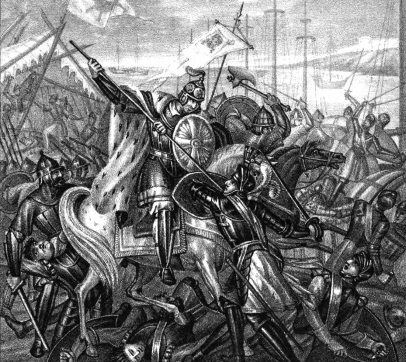 - Невская битва, фрагмент иконы «Александр Невский со сценами жития», XIX век