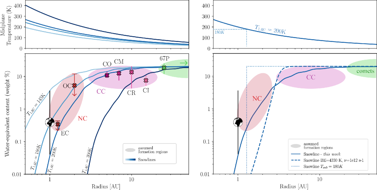 Представьте себе новорождённую Солнечную систему: гигантский вращающийся диск из газа и пыли, в центре которого разгорается молодое Солнце. Было жарко. Настолько жарко, что вблизи звезды летучие соединения, вроде воды, просто не могли существовать в твёрдом виде — они мгновенно испарялись.