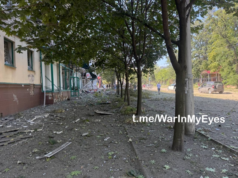 На улице Университетская поврежден пятиэтажный жилой дом, разбиты окна и балконы, повреждена кровля. Также вражеский удар пришелся по территории Республиканского травматологического центра (прежнее название — Областная травматологическая больница), расположенному напротив разрушенного дома.