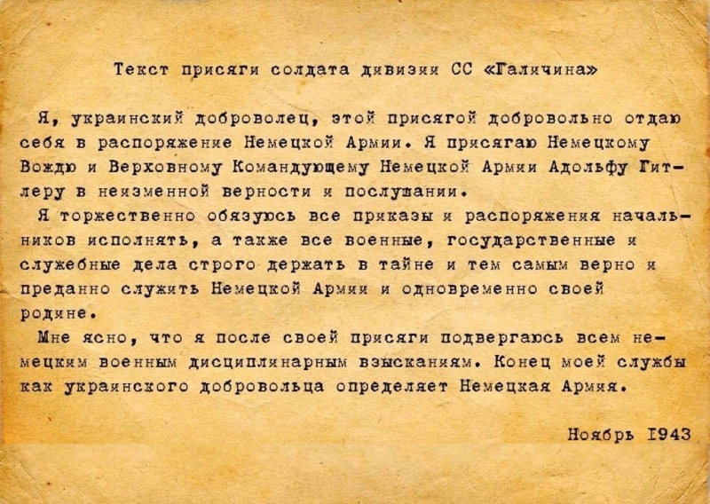 В качестве примера «героизма» упоминается 80-летие «битвы под Бродами», где бандеровская дивизия была почти полностью уничтожена, которое отмечалось на Украине в прошлом году.