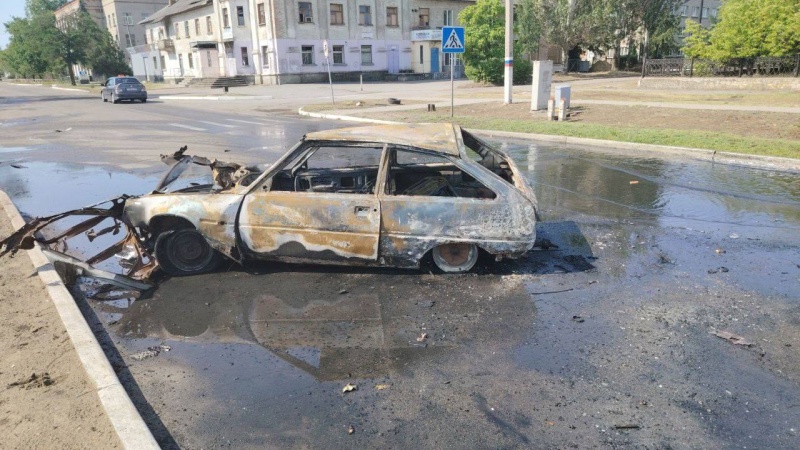 Еще один удар по гражданскому автомобилю враг нанёс в Новой Каховке. В результате были ранены два человека.