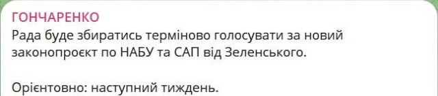 Ранее эту информацию озвучил нардеп Алексей Гончаренко*.