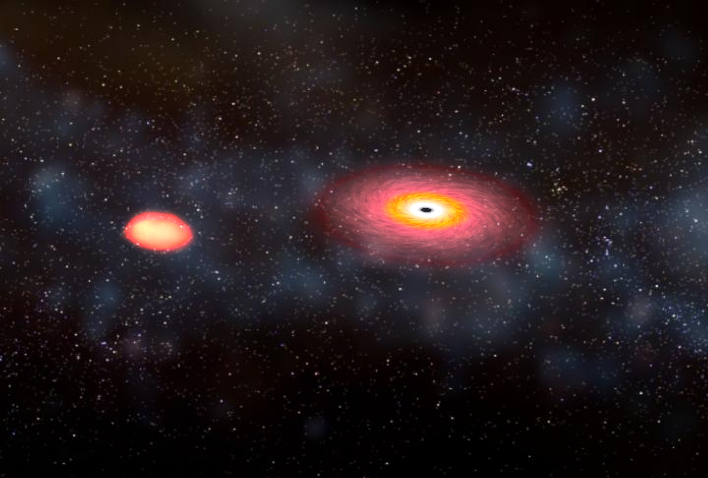 Источник: https://commons.wikimedia.org/wiki/File:Intermediate-Mass_Black_Hole_with_Torn-Apart_Star_(Artist’s_Impression).tif