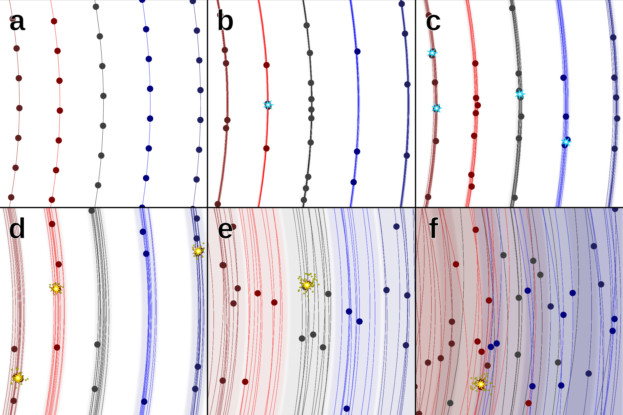 Эти крошечные, но постоянные воздействия медленно, но верно растаскивают стройные орбиты элементов роя. Начинаются столкновения. Сначала редкие, затем всё чаще. Каждое столкновение порождает облако обломков, которые, в свою очередь, становятся новыми снарядами. Запускается цепная реакция, до боли напоминающая то, что мы на Земле называем синдромом Кесслера — лавинообразный процесс, превращающий околоземную орбиту в смертоносное облако космического мусора.