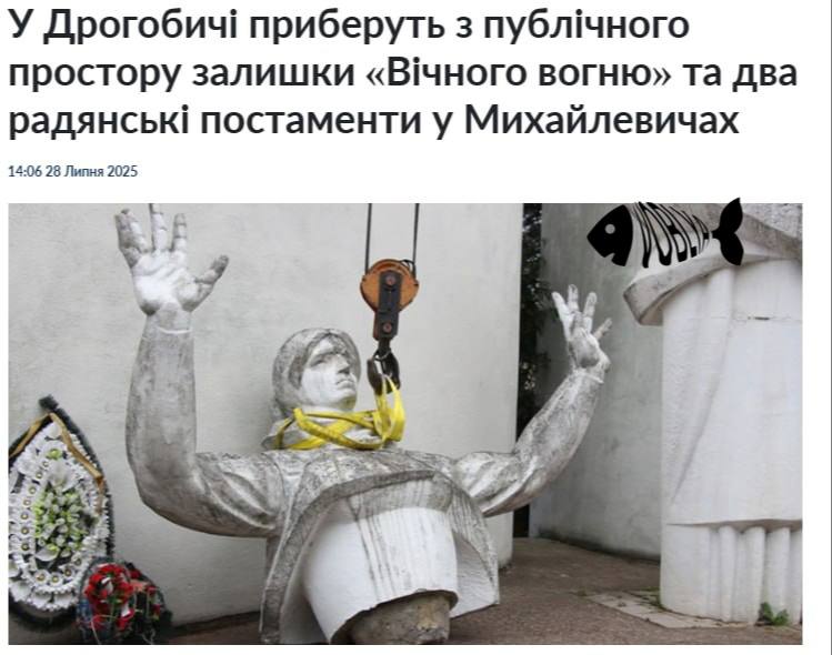 В Дрогобыче Львовской области демонтируют мемориал «Вечный огонь». Также будут демонтированы и два памятника советским солдатам в селе Михайлевичи в нескольких километрах от города.