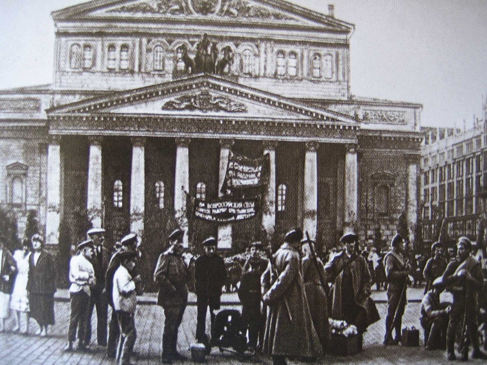 - Латышские стрелки охраняют V съезд Советов. Театральная площадь перед Большим театром в Москве, 1918 год