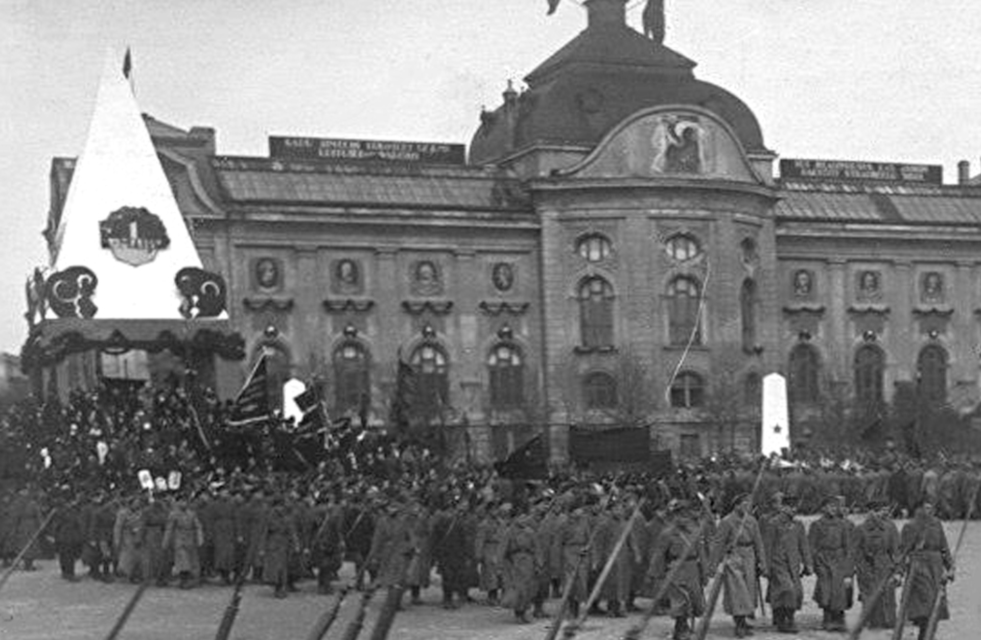 - Подразделения армии Советской Латвии на демонстрации в Риге 1 мая 1919 года