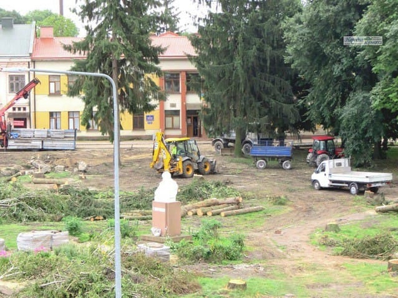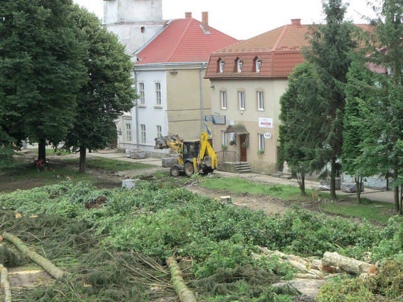 В пригороде Львова, посёлке городского типа с милым названием «Городок» полностью уничтожили центральный сквер. В рамках так называемой «реконструкции центральной площади» вырубили около 70 крупных деревьев – ели, березы, тисы площадью 0,9га. Но мэр Городка Владимир Ременяк заявил, что деревья были «советскими», их высадили «без потребности», и потому их «декоммунизировали».