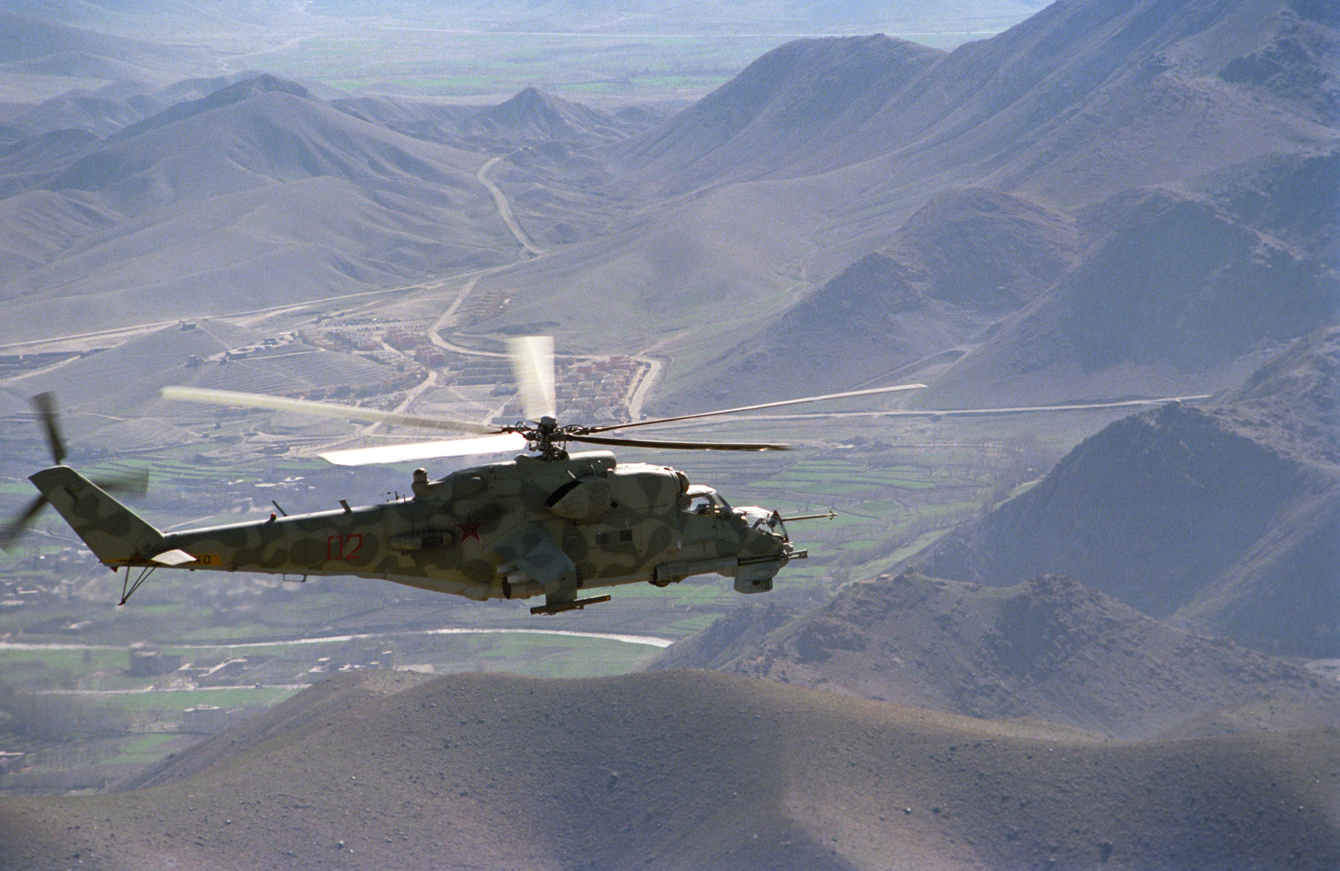 - Вертолёт Ми-24 направляется на боевое задание. Район дороги Кабул — Герат