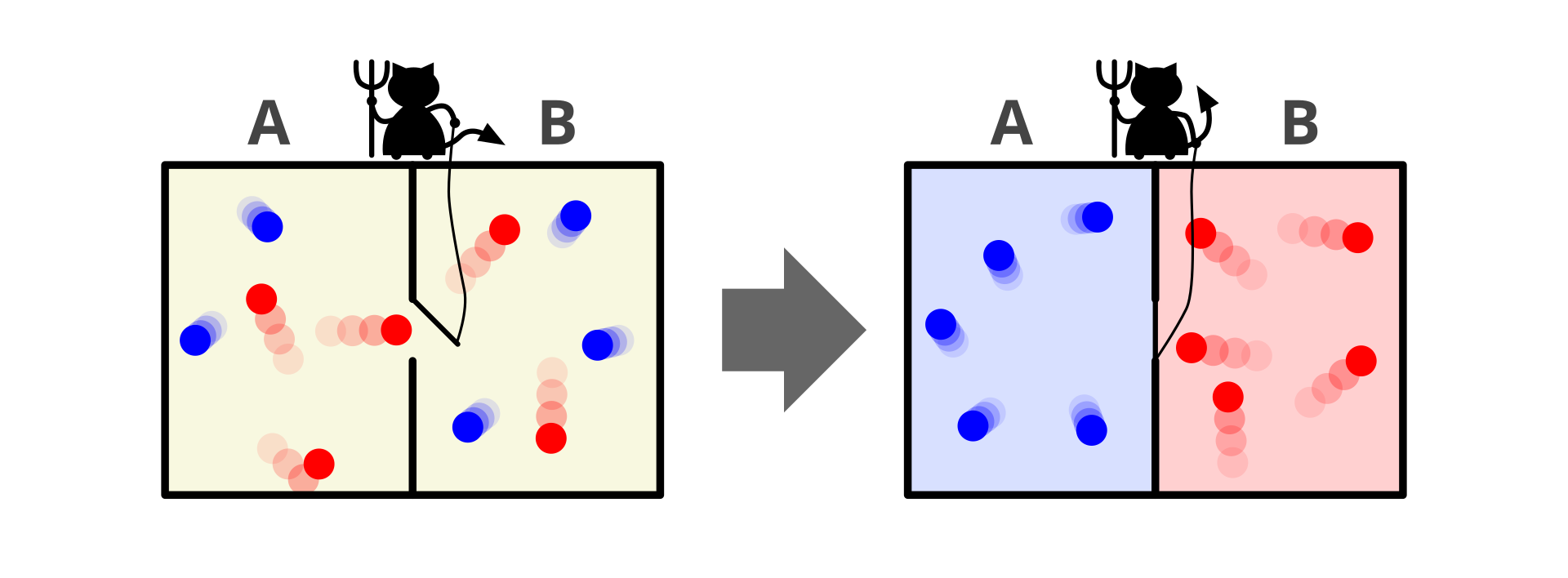 На практике проблем иллюстрируется забавным мысленным экспериментом. Он называется демон Максвелла.