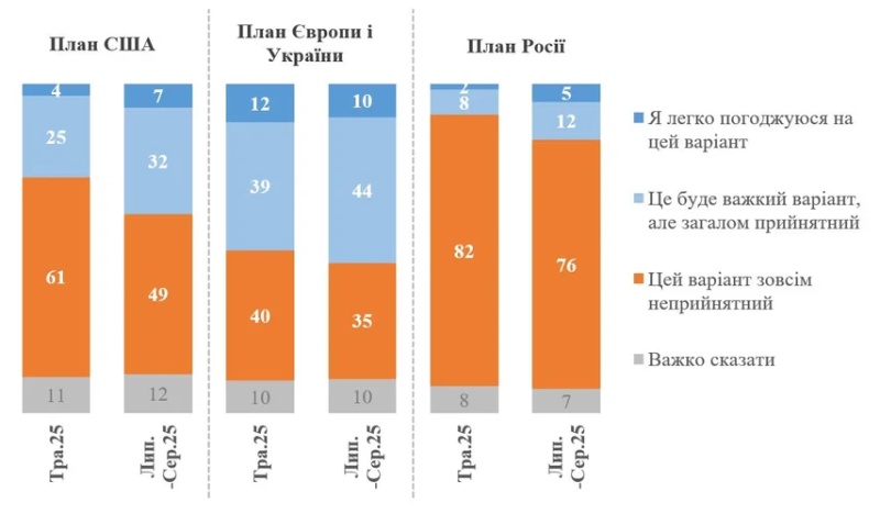 Украинцы категорически исключают мирный план России и отвергают план США — соцопрос