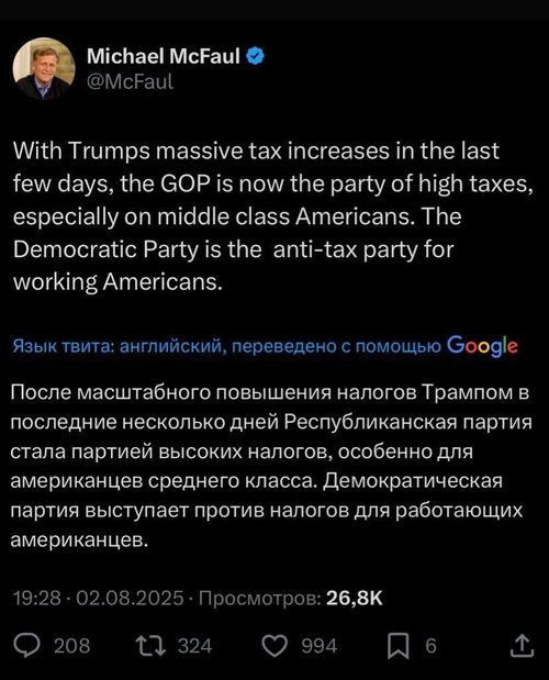 Да уж, победил русских так победил. Пригрозил еще раз санкциями, а затем взял и влепил своим родным американцам повышенные налоги. Даже экс-посол США в России Макфол челюстью в пол бухнулся.