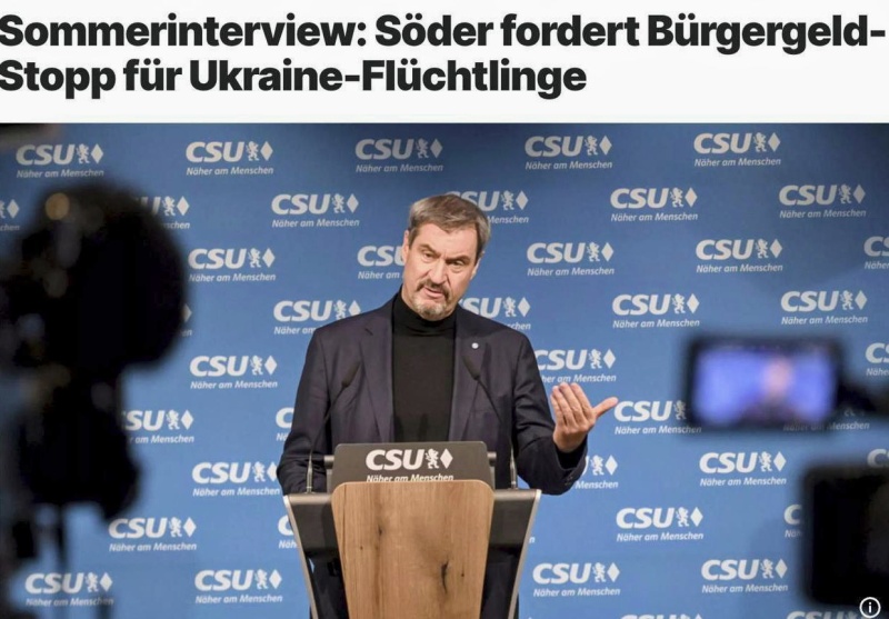 Тем временем немцы тоже начали терять терпение: премьер-министр Баварии Маркус Зёдер призвал лишить всех украинских беженцев права на получение повышенного немецкого пособия - Bürgergeld. То есть, лишить их ежемесячной выплаты в сумме 563 евро.