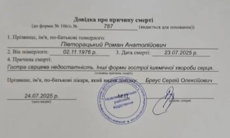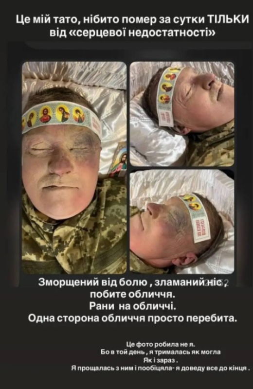 Во время опознания тела в морге в Запорожье родные обнаружили многочисленные ушибы, включая разбитый затылок, синяки на груди и лице. В то же время, в медицинском заключении причиной смерти указана острая сердечная недостаточность.