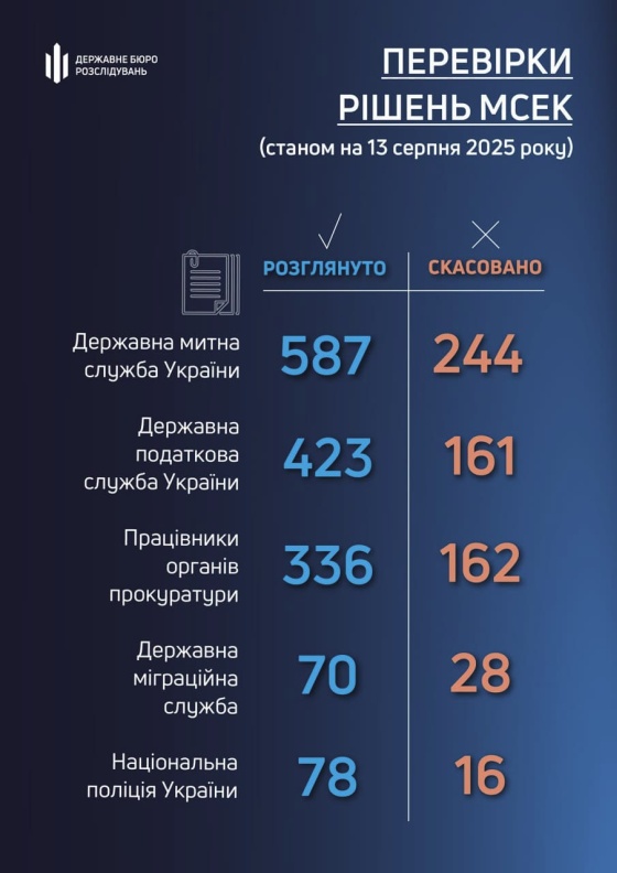 - Государственная таможенная служба Украины – отменено 244 решения из 587 рассмотренных;
