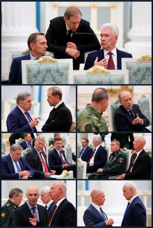 Совещание прошло в Екатерининском зале Кремля. В нём приняли участие первый вице-премьер Денис Мантуров, министр иностранных дел Сергей Лавров, министр обороны Андрей Белоусов, вице-премьер Александр Новак, министр финансов Антон Силуанов, председатель Банка России Эльвира Набиуллина, мэр Москвы Сергей Собянин, руководитель Российского фонда прямых инвестиций и спецпредставитель президента РФ по инвестиционно-экономическому сотрудничеству с зарубежными странами Кирилл Дмитриев, глава Администрации президента Антон Вайно, первый заместитель руководителя Администрации президента Сергей Кириенко, заместитель руководителя Администрации и пресс-секретарь главы государства Дмитрий Песков, помощник президента Юрий Ушаков.