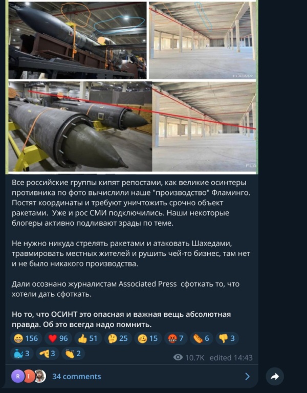 «Да, определённый урон «Фламинго» может нанести хотя бы потому, что любая ракета — это угроза (и это необходимо учитывать), но ровно до того момента, пока против него не выстраивается система контрмер. При нормальной организации обороны это будет очередной эпизод в длинной череде «чудо-вооружений», которые сначала преподносят как решающий фактор развития конфликта, а потом тихо забывают», — заключает телеграм-канал.