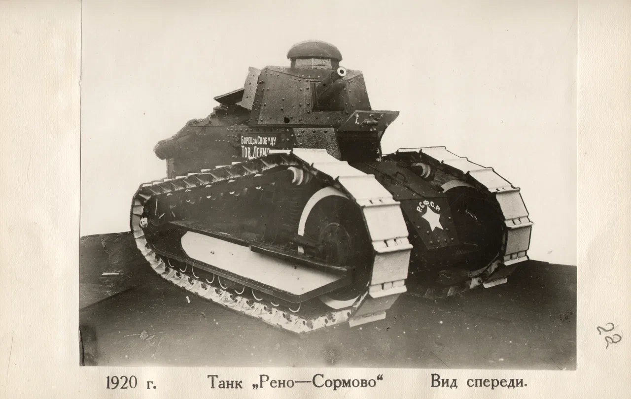 История первенца отечественного танкостроения началась весной 1919 года. Один из трофейных «Рено», захваченных Красной армией в боях с французскими интервенционными частями под Одессой, разобрали, погрузили в вагоны и отправили в Нижний Новгород на завод «Красное Сормово», где эту машину изучили и воссоздали. 31 августа 1920 года первый «Рено Русский» своим ходом покинул заводской цех.