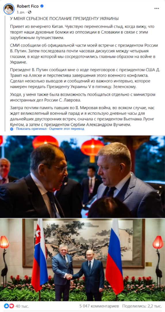 «Пора встать на сторону России и наших русских братьев». Словаки в восторге от поездки Фицо в Китай и встречи с Путиным