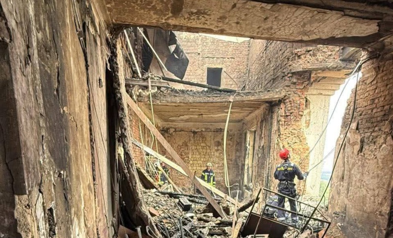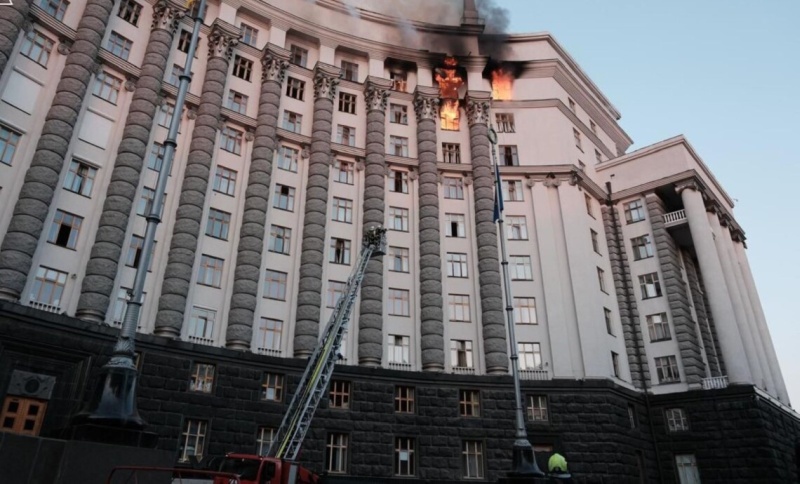 Сегодня, 7 сентября, ночью во время массированной атаки БПЛА ВС РФ по Киеву пострадало здание Кабмина Украины в центре столицы Украины. По словам мэра Киева Кличко «обломки» зацепили Кабмин Украины. Огонь охватил площадь в 1000 кв. метров. Загорелись крыша и верхние этажи