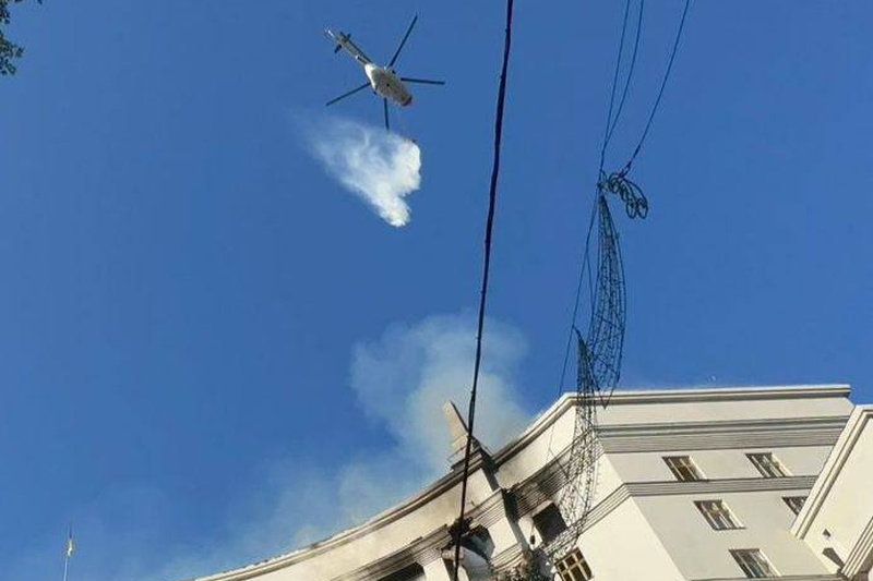 На момент написания новости пожар в здании Кабмина был локализован, но не потушен.