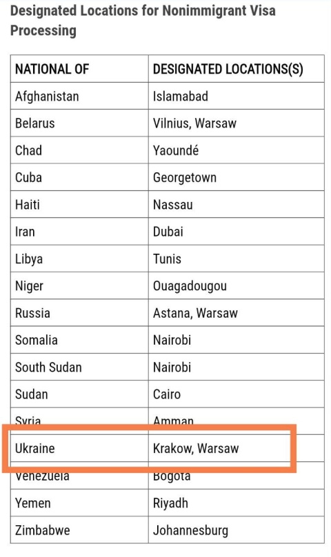 США изменили правила получения неиммиграционных виз: документы нужно подавать в стране гражданства или проживания. Граждане Украины теперь могут подавать документы на визу исключительно через консульства в Кракове и Варшаве. Киев в списке не упоминается.