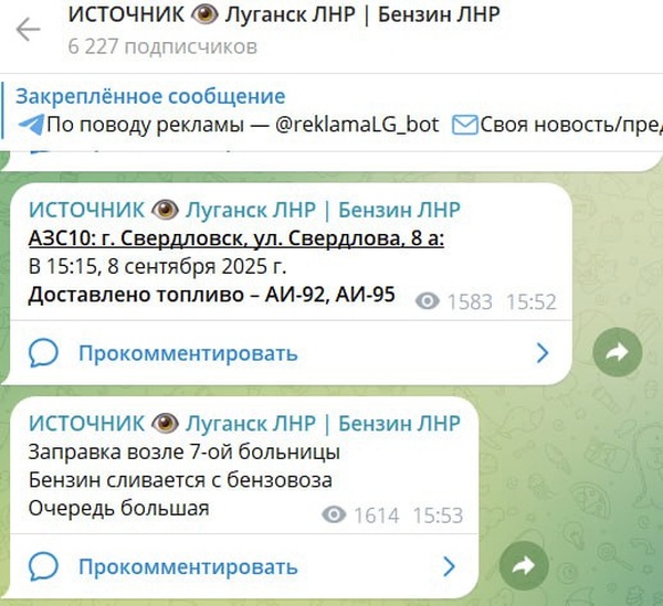 «В середине августа 2025 года зафиксировано падение запасов бензина у поставщиков ГСМ, что связано с перебоями в логистике и ударами ВСУ по топливной инфраструктуре. Противником целенаправленно велась информационная кампания с населением ЛНР по созданию панических настроений. В итоге — то количество, которое активно закупает население, в разы превышает запланированные нормы и запасы. Дефицит сохраняется», — заявили в Минтопэнерго.