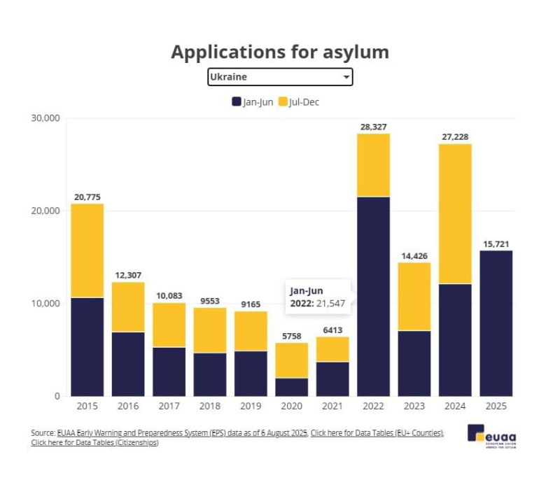 Согласно нему, за первое полугодие 2025 года количество заявлений на убежище от граждан Украины в странах ЕС и Швейцарии выросло на 29% и составило 16 тысяч.