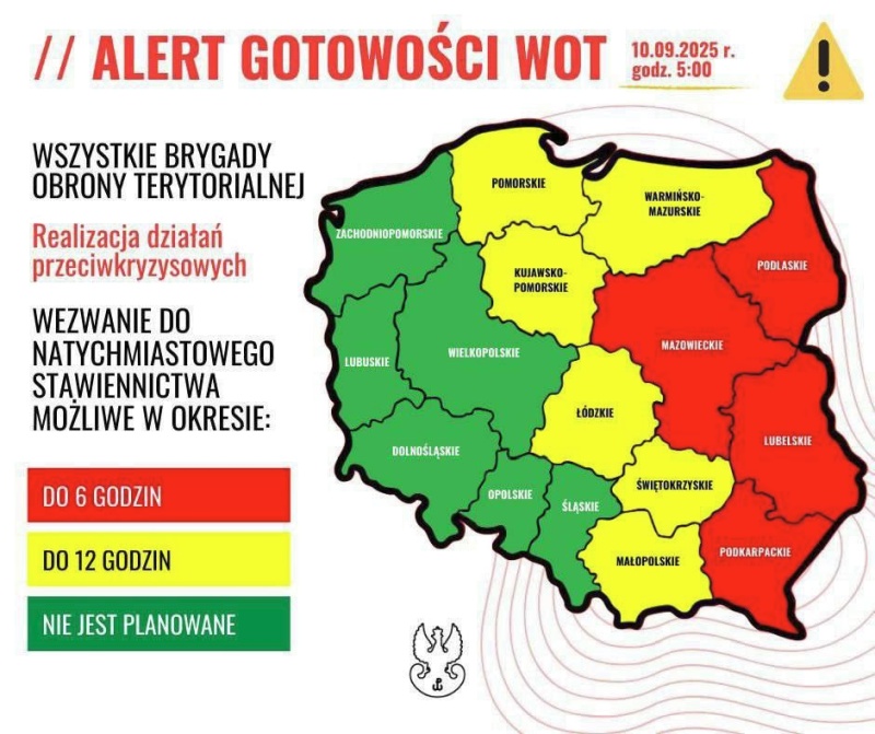 Территориальная оборона Польши ввела сокращённое время прибытия для своих солдат в части — до шести часов.