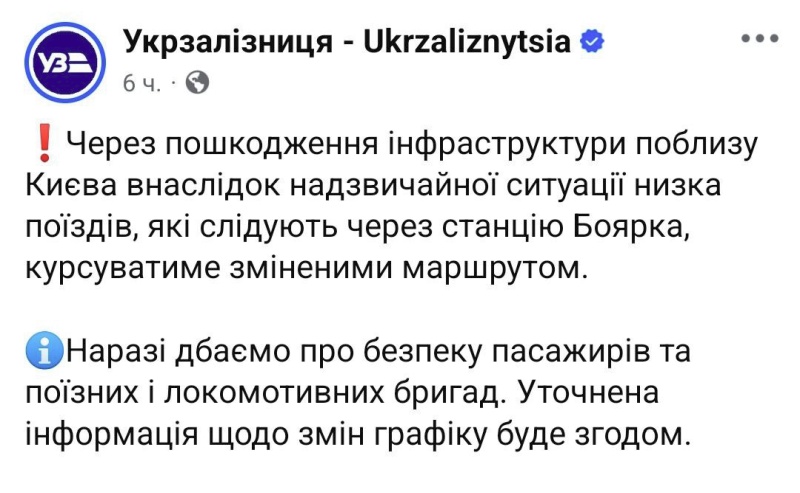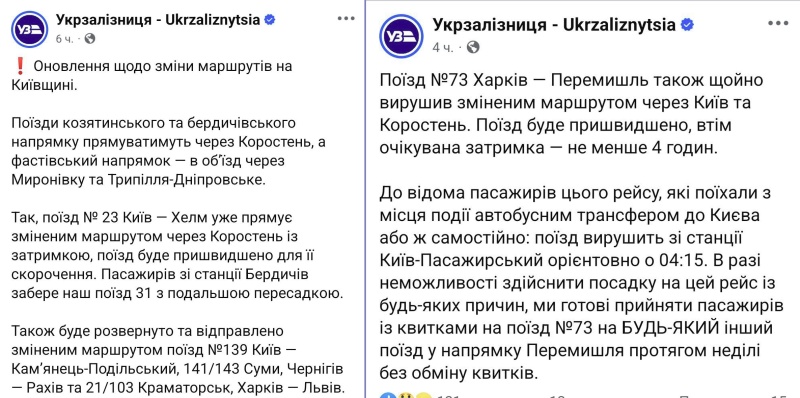 Глава правления «Укрзализныцы» Александр Перцовский в соцсетях подтвердил, что поезд Харьков-Перемышль попал в зону «чрезвычайной ситуации», но уже продолжил своё движение по измененному маршруту