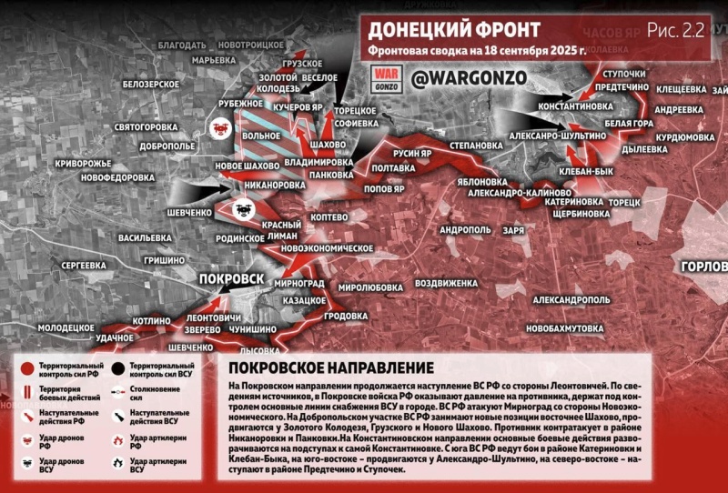По данным российских военкоров, на Добропольском участке ВС РФ расширяют зону контроля, несмотря на упорное сопротивление противника. Российские подразделения занимают новые позиции восточнее Шахово, продвигаются у Золотого Колодезя, Грузского и Нового Шахово. Противник контратакует в районе Никаноровки и Панковки.