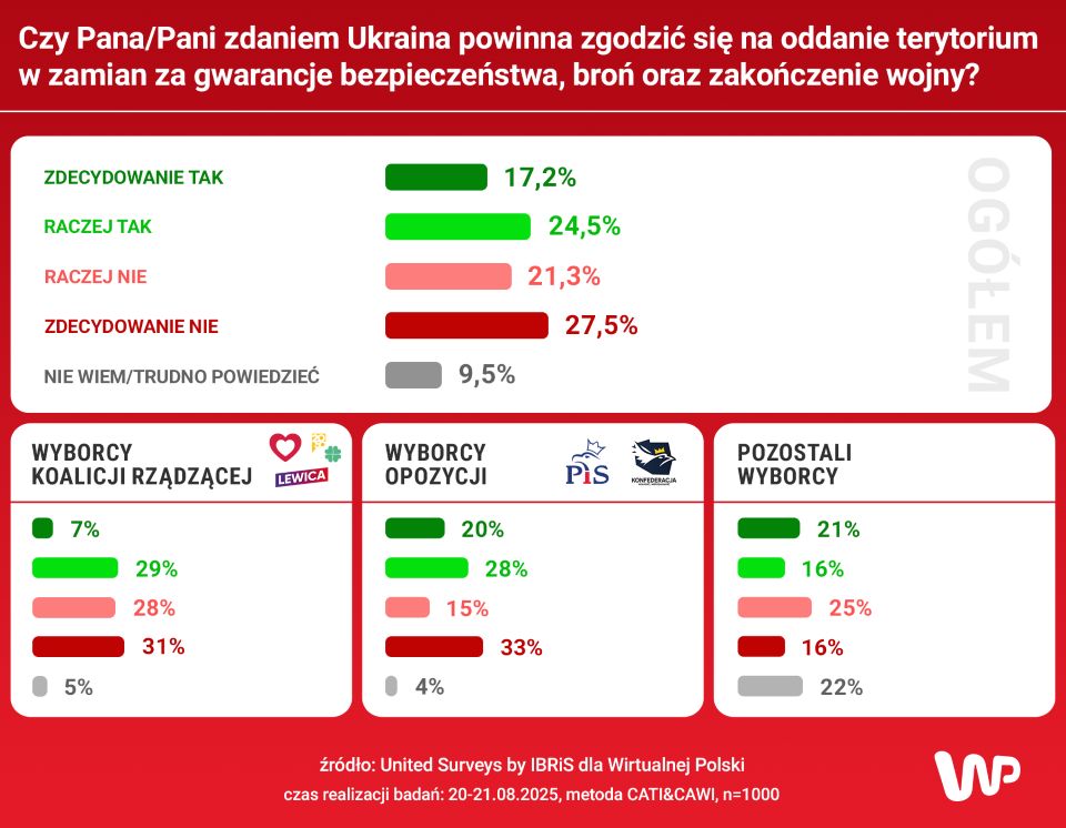 Опрос United Surveys для Wirtualna Polska был проведен 20-21 августа 2025 года на репрезентативной выборке 1000 польских респондентов.