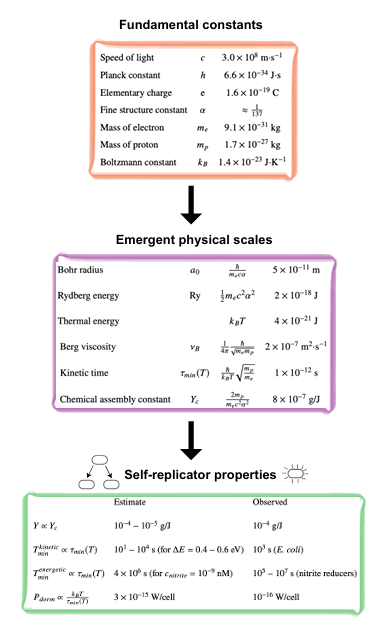 Этот вопрос изучили физики Панкадж Мехта и Яне Кондев. Их цель была не объяснить появление жизни. Они хотели показать, что некоторые ключевые параметры живых систем можно вычислить, имея только несколько физических констант. Например, скорость света, массу электрона и постоянную Планка.