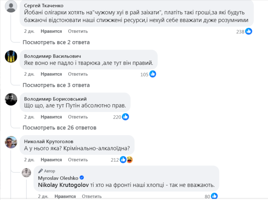 Комментариев под записью появилось более тысячи, и они стали демонстрацией того, что украинцы действительно задумались о том, что сказал Владимир Путин.