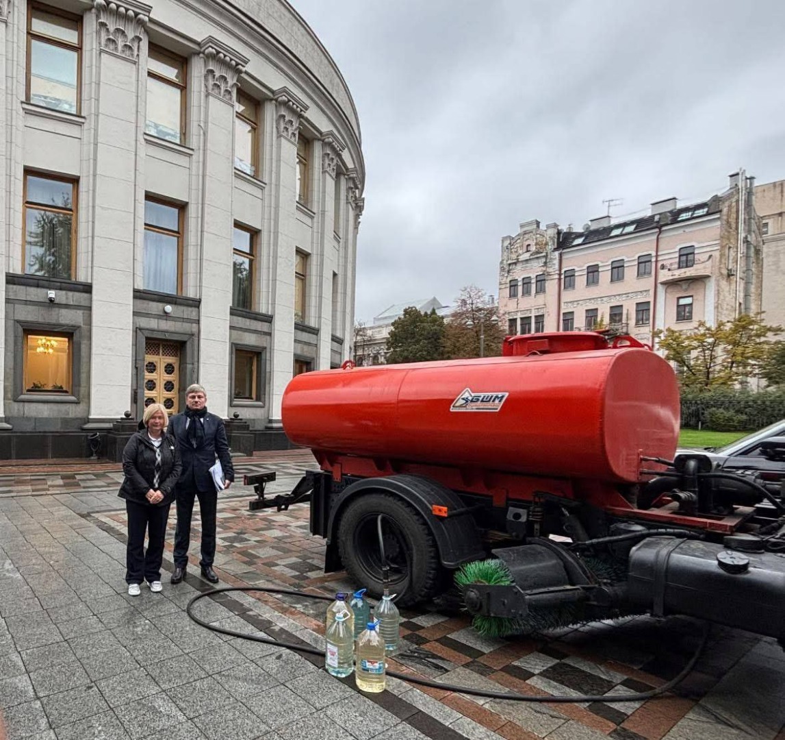 «Подвозят воду после ночных обстрелов в Раду. В городе водоснабжение обещают возобновить до вечера. Фото говорит само за себя», - пишет «Киевский движ».