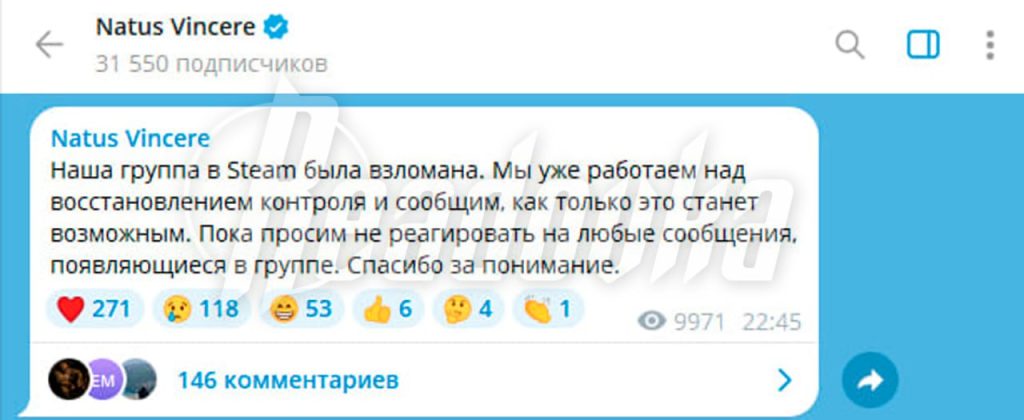 Группа украинской киберспортивной команды Natus Vincere (NaVi) подверглась атаке хакеров. На это обратила внимание Readovka.