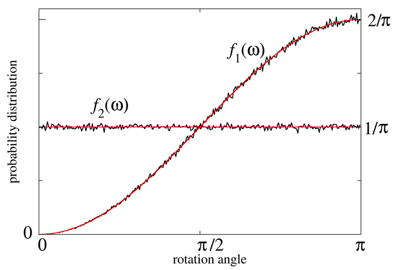 Состояние «отсутствия вращения» — это одна-единственная точка в огромном пространстве всех возможных ориентаций. Статистический анализ, основанный на так называемой мере Хаара, показывает, что случайные вращения крайне неохотно группируются вокруг малых углов. Иными словами, вероятность того, что случайная последовательность поворотов сама по себе закончится в нулевой точке, практически равна нулю. Изменение одного-единственного параметра λ не меняет эту картину.