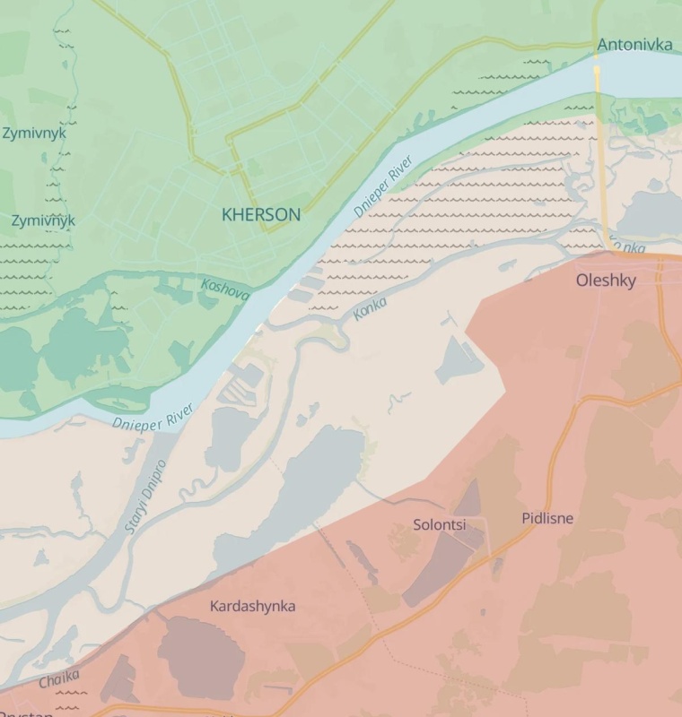 Украина эту информацию не подтверждала. На картах DeepState весь Херсон находится под контролем ВСУ. Но острова около него - в серой зоне.