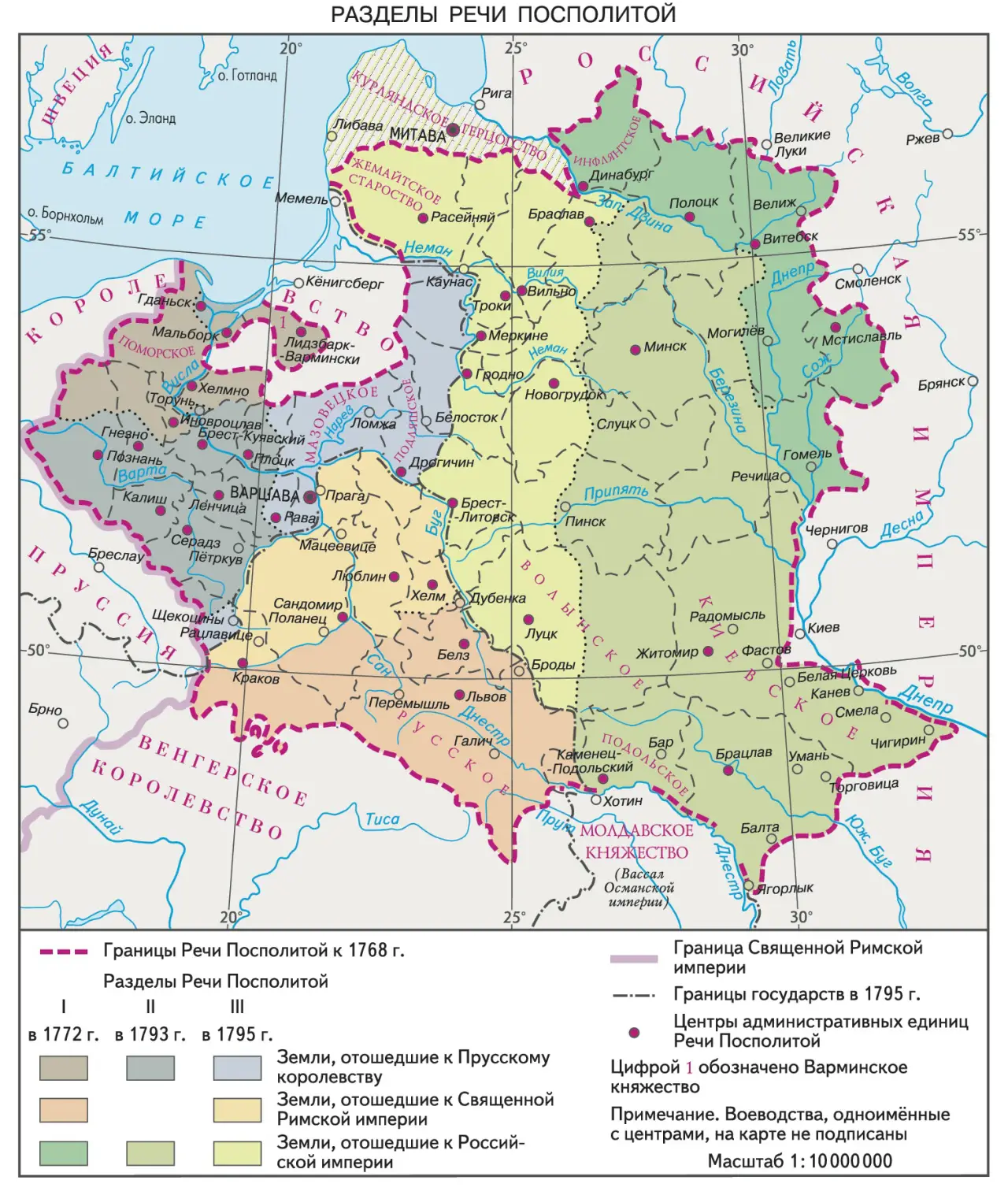 В 1793 году состоялся Второй раздел Речи Посполитой: Россия получила Центральную Белоруссию с Минском и часть Малой Руси-России. В 1795 году состоялся Третий раздел Речи Посполитой: Россия получила Литву, Курляндию, западную Волынь и Западную Белоруссию.