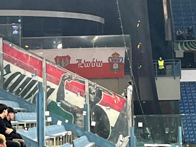 Как сообщают спортивные СМИ, болельщики польской команды устроили провокационную встречу украинцам. Они принесли баннер с надписью Lwów (Львов) на фоне флага Польши, «Мы помним Волынь», а также выкрикивали антиукраинские лозунги.